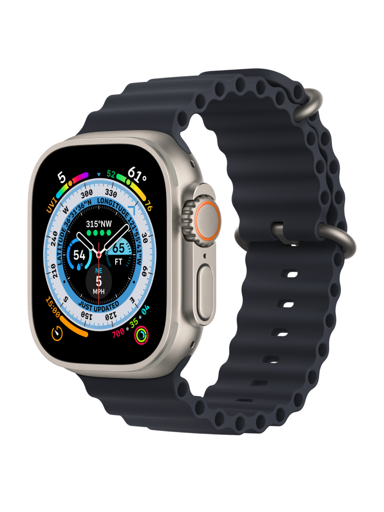 Титан — идеальный материал для спортивных смарт-часов. Одновременно легкий, прочный и невосприимчивый к коррозии. А в новых Apple Watch Ultra GPS дополнительно продумана форма корпуса. Обрамление циферблата выступает вверх, обеспечивая дополнительную защиту дисплея из сапфирового стекла.